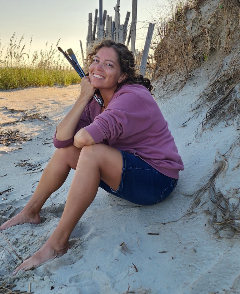 As well as painting in my home studio, I love staying as active as possible. I'm always up for some roller skating or a game of 9 ball. I spend lots of time with my husband Dan, our dog, Deleaners, and I visit our hometown of South Bend, Indiana to see my family whenever I can.